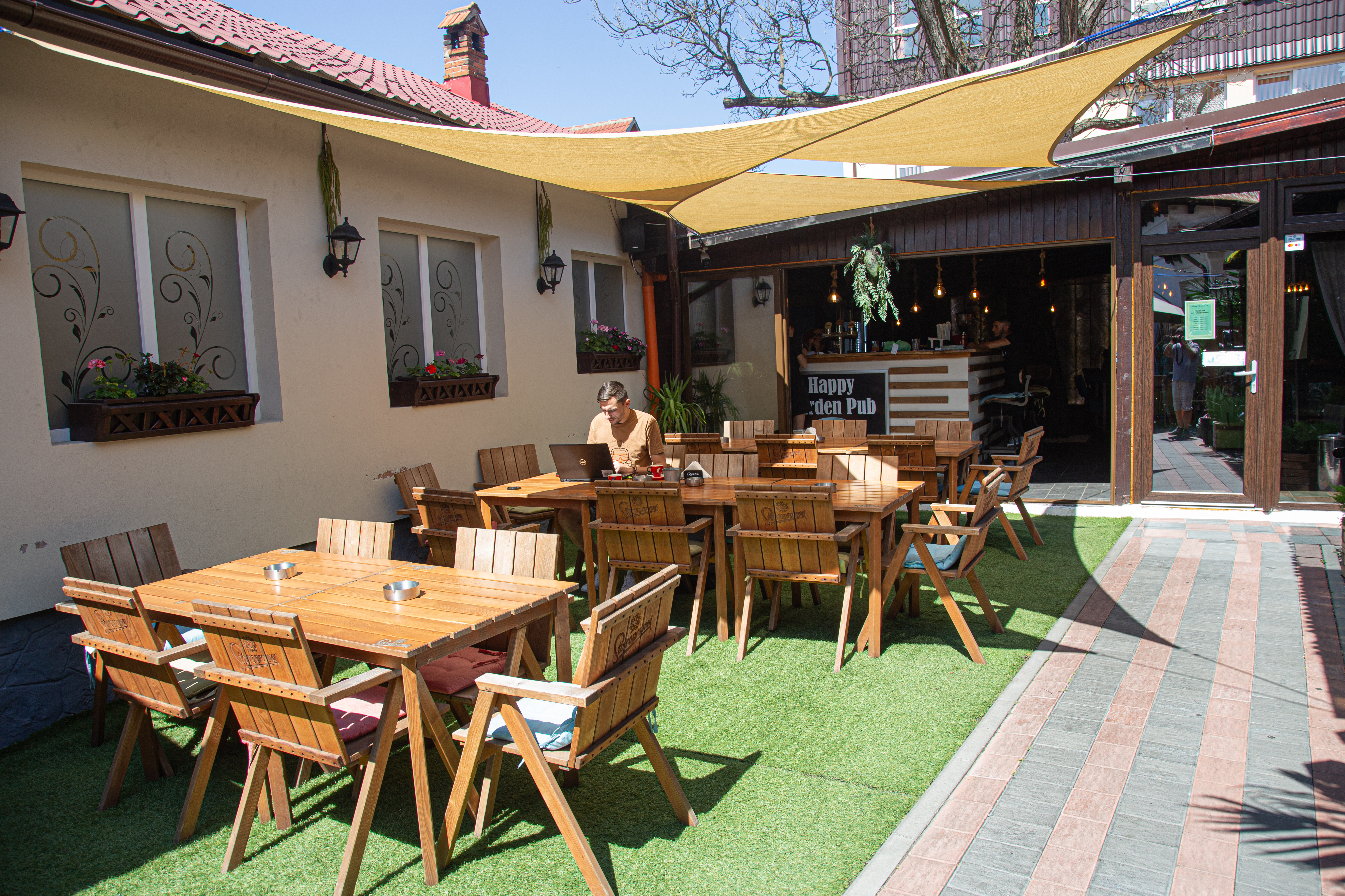 La Happy Garden Pub, atmosfera este caldă și primitoare, cu un decor rustic modern și o grădină verde, creând locul perfect pentru momente relaxante alături de cei dragi.