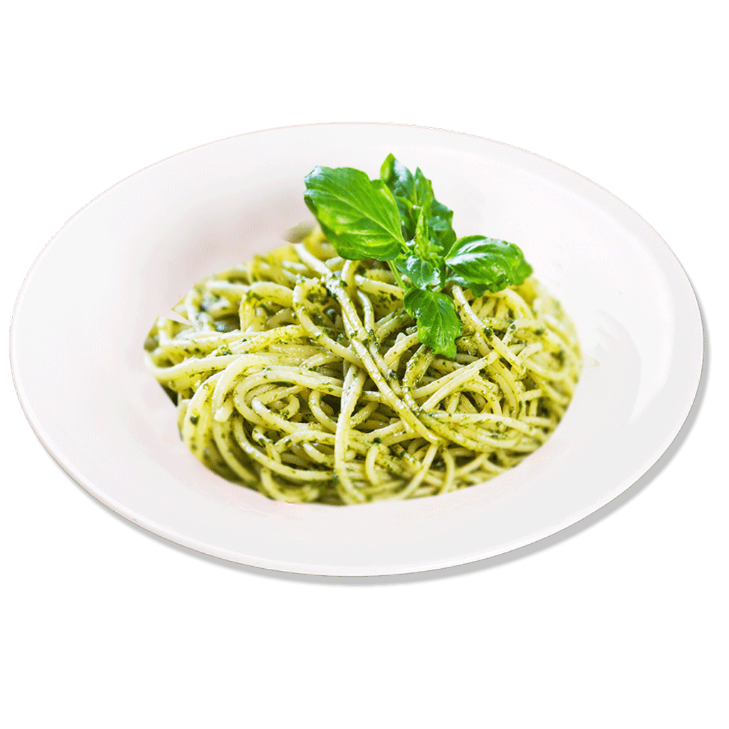 Sauce légère au pesto* basilic, oignons caramélisés, pignons