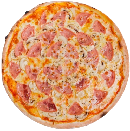Salami épicé, jambon et champignons frais sur sauce* tomate